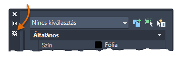 A két leggyakrabban használt paletta a Tulajdonságok és a Fóliatulajdonság-kezelő. Ha ezt a két palettát az Automatikus elrejtés lehetőséggel rögzíti, akkor nem veszíti el a rajzterület két sávját, viszont a mutatóval azonnal elérheti azokat.