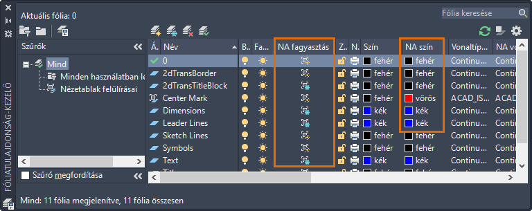Ha a CAD-szabványok módosulnak, a fóliaállapot segítségével frissítheti a fóliák tulajdonságait az új CAD-szabványoknak megfelelően