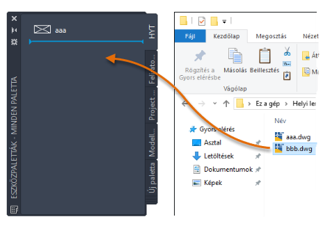 A Fájlkezelőben nyissa meg a HYT könyvtár mappát. Ezután húzza a két rajzfájlt a HYT palettára.