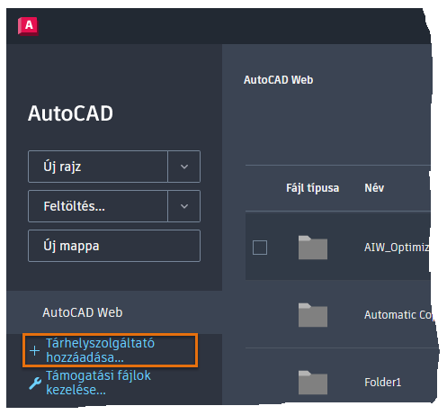 Felhőalapú tárhely hozzáadása az AutoCAD webes alkalmazáshoz