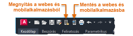 Nyisson meg egy fájlt az AutoCAD webes és mobilalkalmazásból a Megnyitás a webes és mobil alkalmazásból elemre kattintva (WEBMOBILMEGNYIT parancs)