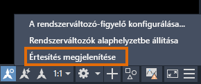 Az értesítések alapértelmezés szerint engedélyezve vannak. Ha módosult egy megfigyelt rendszerváltozó, egy ikon jelenik meg az állapotsoron (a jobb alsó részen, a rajzterület alatt).