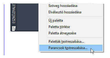 Megjegyzés: Létrehozhat egyéni parancsokat is a Felhasználói felület testreszabása (CUI) szerkesztővel, és felveheti azokat egy eszközpalettára vagy akár a szalagra.