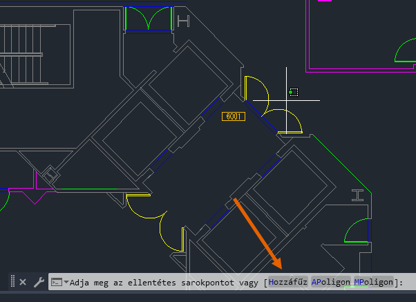 Ablak poligon: Kattintson egyszer az ablakos kijelölés megkezdéséhez. A parancspromptba írja be az a karaktert az ablak poligonhoz. Folytassa a pontok megadását. Nem kell bezárnia a poligont. Az Enter megnyomásakor automatikusan bezárul. Az ablak poligon által körbezárt objektumok lesznek kijelölve.