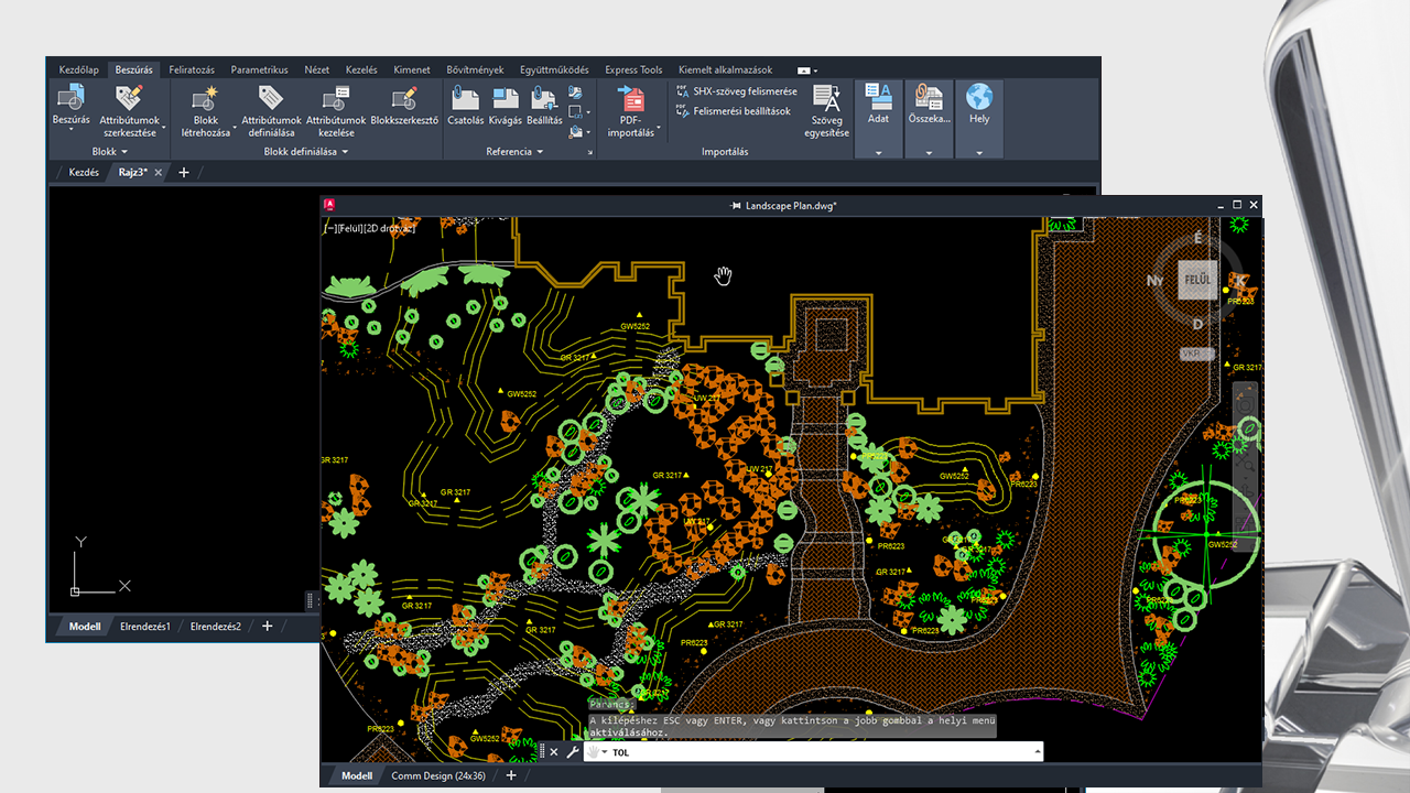 - A rajzablakok kitűzhetők egy tetszőleges helyre. A kitűzött rajzablak mindig a fő AutoCAD alkalmazásablak felett látható.