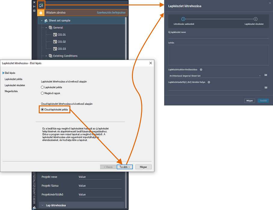 Ebben a kiadásban a Webes lapkészletkezelővel egyszerűen létrehozhat lapkészletet az Autodesk Docsban, akár az AutoCAD asztali alkalmazását, akár az AutoCAD webes alkalmazást használja.