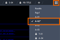 A rajz- és elrendezéslapok módosításai megkönnyítik annak meghatározását, hogy melyik rajz és elrendezés az aktív. A módosítások megkönnyítik annak megtekintését is, hogy melyik rajz az aktív a rajzlap további menüjében.