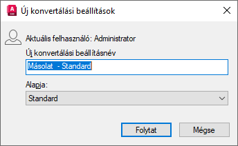 Meglévő konvertálási beállítás kiválasztását teszi lehetővé, amely az alapját képezi majd az újnak.