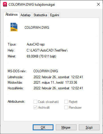Az operációs rendszerből származó, csak olvasható információt jelenít meg a rajzfájlról.