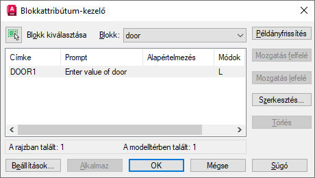 Felsorolja az aktuális rajzban található összes, attribútummal rendelkező blokkot. Jelölje ki azt a blokkot, amelynek attribútumait módosítani szeretné.