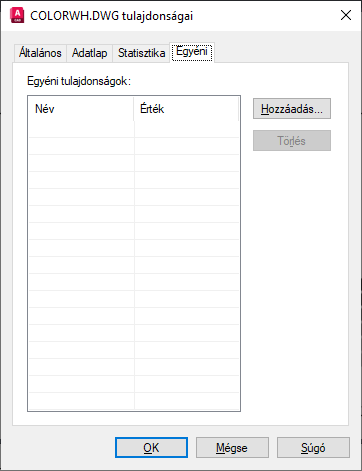 Megjeleníti az aktuális rajz egyedi tulajdonságainak neveit és értékeit.