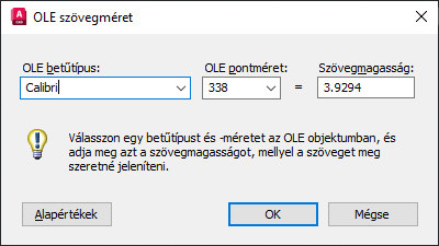Az OLE-objektum automatikusan léptékezésre kerül a szöveg méretéhez történő illeszkedés érdekében.