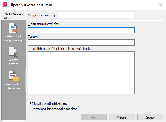 Elektronikus levélcím lap (Hiperhivatkozás beillesztése párbeszédpanel)