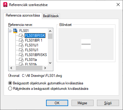 Megjeleníti a kiválasztott referenciafájl helyét. Ha nem egy blokk, akkor nem jelenik meg útvonal.