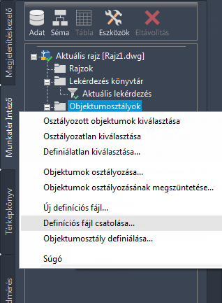 - Az objektumdefiníciós fájl csatolásához kattintson a jobb gombbal a Feladatok lap Munkatér Intéző lapjának Objektumosztályok elemére, és kattintson a Definíciós fájl csatolása parancsra.