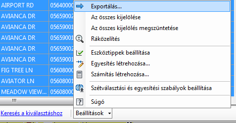 Jelenítse meg az építkezési zóna telkeinek Adattábláját. Exportálja az adatokat vesszővel tagolt fájlba. Az adatokat a kívánt módon használhatja fel. Használhatja azokat például jelentésben, vagy az építési zónában lévő telkek tulajdonosai levelezési listájának létrehozásához.