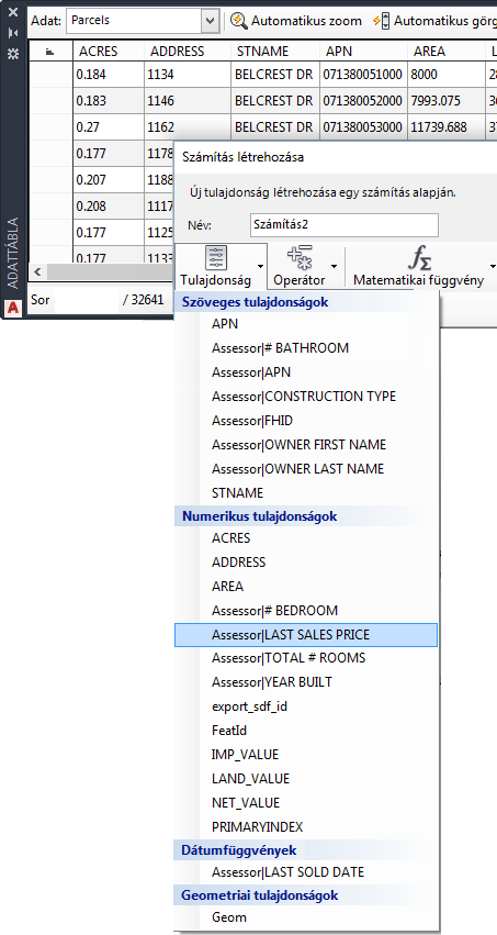 - Kattintson a Tulajdonság elemre. A Numerikus tulajdonságok területen válassza az Assessor| LAST SALES PRICE lehetőséget.