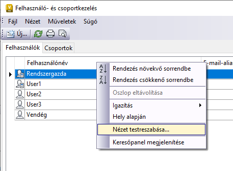 Oszlopmezők hozzáadásával vagy eltávolításával testreszabhatja a megjelenítést. A nézet testreszabásával a felhasználókezelés sokkal megfelelőbb lesz a követelményeinek.
