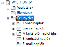 Konzol-, szerver-, fájltároló, felülvizsgálati és e-mail-naplófájlok elérése a Kezelés mappában.
