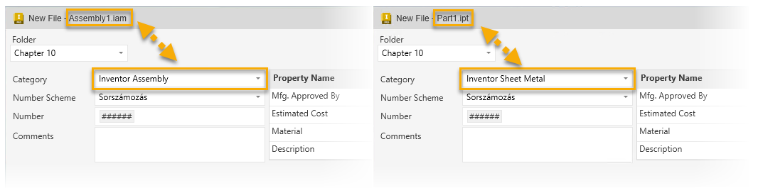 Ennek a fejezetnek a szabályparancsfájljai a Mérnöki kategória alapértelmezett előzetes kiválasztását az egyes Alkatrész, Összeállítás vagy megfelelő Rajz kategóriákra módosítják minden VDS alkalmazásban, valamint az AutoCAD, az Inventor és a Vault alkalmazásban.