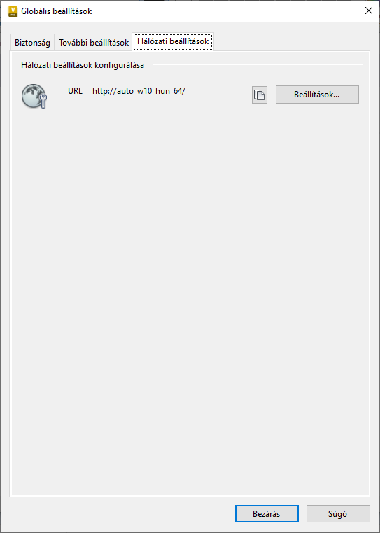 - A Hálózati beállítások lap megjeleníti a Vault kliens csatlakoztatására szolgáló szerver URL-címet.