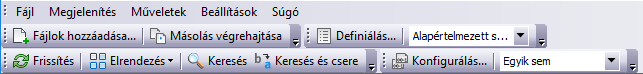 Az eszköztár öt menüből áll: Fájl, Nézet, Műveletek, Beállítások és Súgó menü.