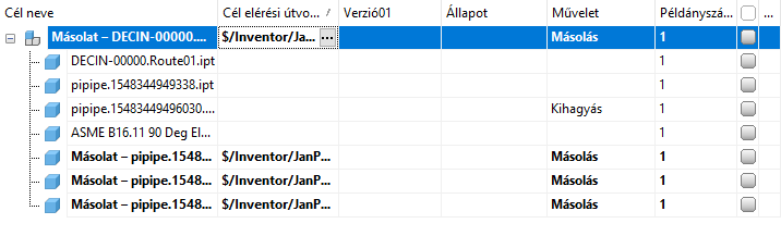 Alapértelmezés szerint minden részegység-referencia másolásra kerül. Ha a referenciák kiválasztása be van kapcsolva, kiválaszthatja, hogy mely részegységeket másolja a rendszer. Megjegyzés: A Referenciák kiválasztás nézetben nem engedélyezett a többszörös kijelölés. Minden kiválasztott referenciának rendelkeznie kell egy egyedi művelettel.
