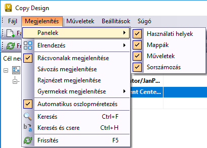 Válassza ki a Copy Design párbeszédpanelen megjeleníteni kívánt paneleket. |