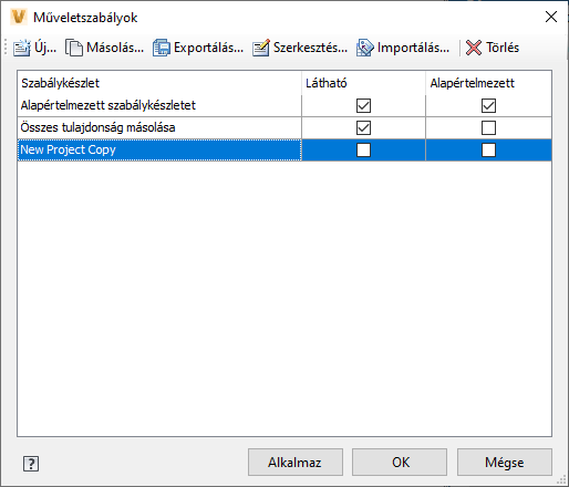 Válasszon ki egy létező szabályt, majd kattintson a Másolás gombra, ha szeretne másolatot készíteni a szabályról. A másolat az eredetivel megegyező feltételekkel és viselkedési beállításokkal rendelkezik. |