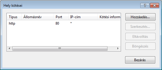 - Az Internet Information Services párbeszédpanelen bontsa ki a Helyi számítógép ► Helyek útvonalat, és kattintson a jobb gombbal az Alapértelmezett webhely elemre, majd válassza a Kötések lehetőséget.
