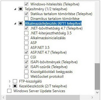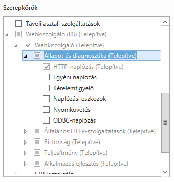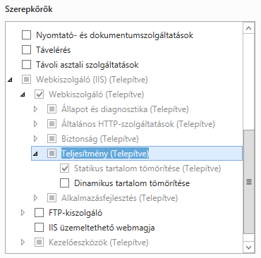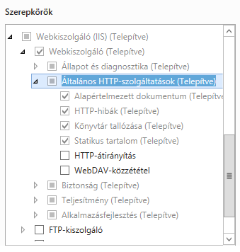 - A Kiszolgálói szerepkörök területen jelölje ki a következő szerepköröket: