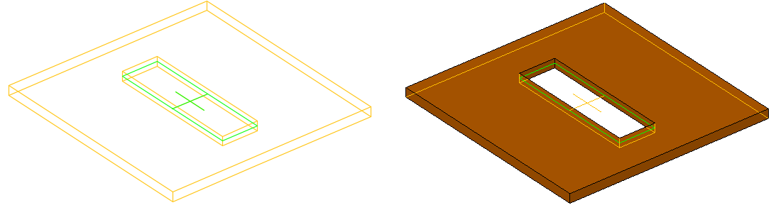 The cuts can be attached as inner contours as well as outer contours. The rectangle size is set by the defaults.