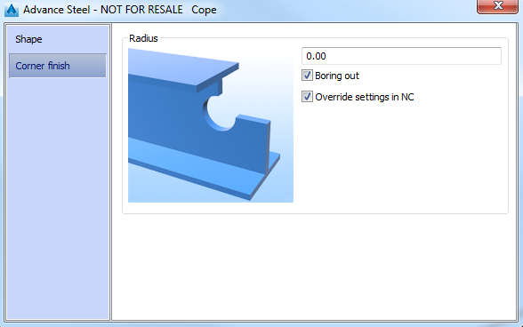 Defines the radius at the cope corner.