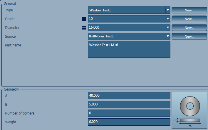 Create and Customize Nut and Washer Types. The following configuration was made, to suit the bolt that is defined in this example: