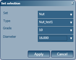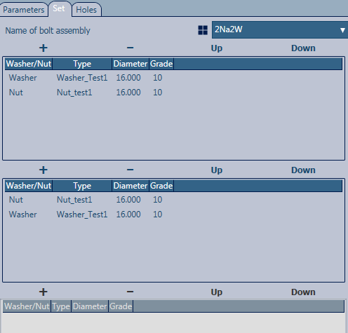 Set tab and create a new anchor assembly by clicking the New button next to the Name of bolt assembly field dropdown list, type an explanatory name (e.g. 2Na2W, which stands for a bolt set with 2 nuts (N) and 2 washers (2W) and click Apply.