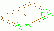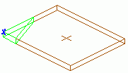 - The corner processing is created at the selected corner with a default size and shape. It is represented with a green contour processing in the model. The properties dialog box appears.