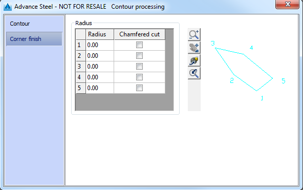 | Radius | Defines the radius of the corner finish. |