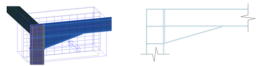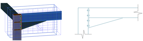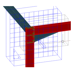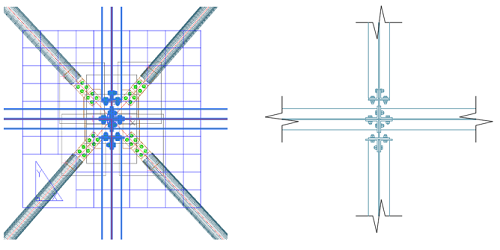 In the case of a camera containing a node where several beams and braces intersect, you can obtain a camera detail drawing showing only the beams and their respective connections: