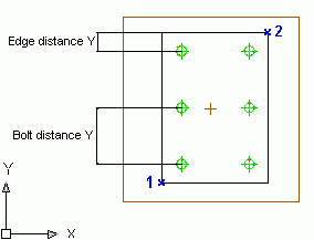 On this tab of the properties dialog box, you can modify the size of the bolt group defined by two diagonal points.
