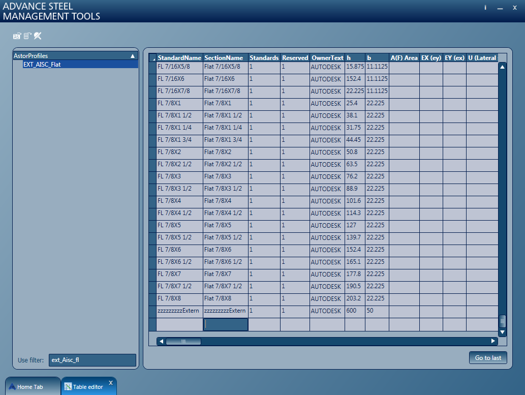 To add a new size to an existing shape you need to edit the AstorProfiles database, using the Table Editor from the Management Tools application or any other .mdf editor (e.g. SQL Server). The AstorProfiles database is located by default in ...\ProgramData\Autodesk\Advance Steel 2023\[INSTALLATION LANGUAGE EXTENSION]\Steel\Data