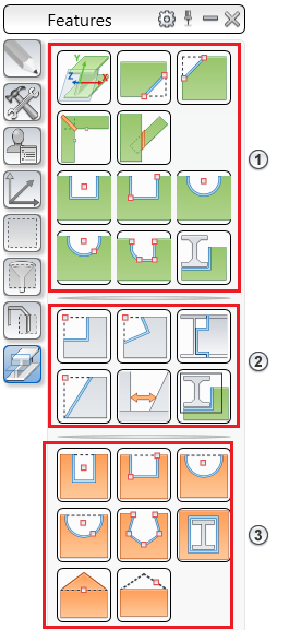 To cut or cope contours, use the tools located on the Features tool palette: