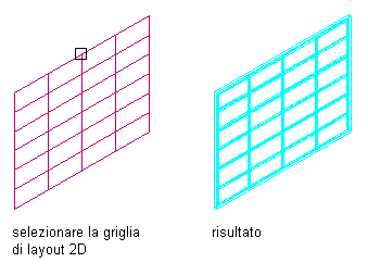 Le linee orizzontali e verticali della griglia di layout 2D definiscono le divisioni delle griglie della facciata continua. Ai montanti verticali, alla cornice e alle celle della griglia sono assegnate definizioni di default.