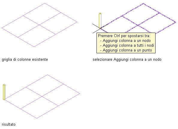 | Aggiungere una colonna in corrispondenza di un determinato nodo della griglia | Spostare il cursore sul nodo o in prossimità del nodo e fare clic. Viene aggiunta una colonna al nodo più vicino alla posizione del cursore. |
