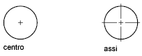 Crea il centro o le linee d'asse non associativi di cerchi e archi.