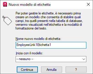Le etichette sono oggetti di testo multilinea che consentono di visualizzare in un disegno i dati provenienti dai campi selezionati memorizzati in una tabella di database esterno.