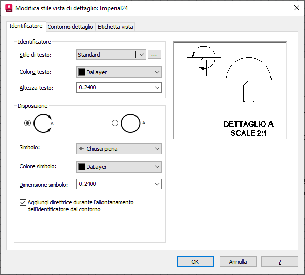 Specifica lo stile del testo da utilizzare per l'identificatore del contorno di dettaglio.