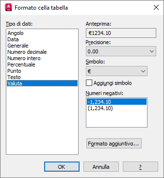 Se si è assegnato il formato di dati come Valuta, il simbolo $ verrà visualizzato automaticamente. Le voci $0.00 sono necessarie come segnaposti per il formato. Se i valori per le colonne della valuta non visualizzano il simbolo $, fare clic con il pulsante destro del mouse e scegliere Formato dati per modificare il formato di dati della cella in Valuta.