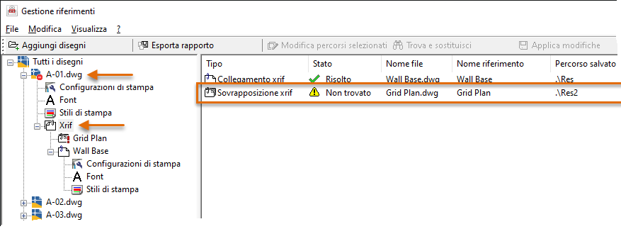 Non sarebbe meglio avere un modo per individuare rapidamente quali file di riferimento risultano mancanti senza dover aprire ciascun file di disegno? O forse è necessario aggiornare rapidamente i percorsi di tutti gli xrif senza aprire e salvare ciascun disegno.