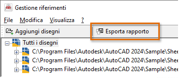 Creare un rapporto su tutti i file di riferimento nei file di disegno specificati
