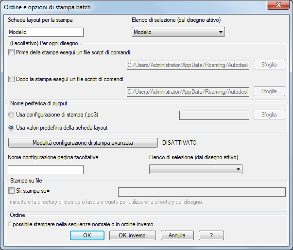 Assicurarsi di selezionare il layout dei disegni selezionati che si desidera stampare. Se è stata definita un'impostazione di pagina, immettere il nome.